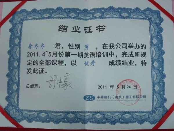 中昇建机2011年度第一期员工英语培训圆满结业