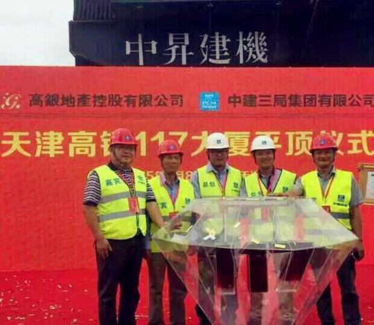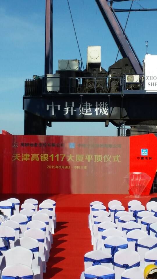 2015年9月8日上午,随着最后一车12方混凝土泵送出管,2015年9月8日上午,随着最后一车12方混凝土泵送出管,由中昇建机参建的天津117大厦主塔楼核心筒结构高度达到596.5米,成为世界结构第二高楼,中国结构第一高楼(世界结构第一高楼为哈利法塔)。117大厦建筑体量约为84.7万平方米。