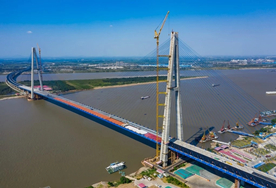 石首长江公路大桥为主跨820m混合梁斜拉桥,位于世界级同类桥梁跨度第七位。