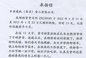 我公司在中建八局金陵饭店扩建工程项目结束之际,以认真负责的态度、高水平的施工质量,圆满完成塔机拆除工作,荣获项目方的高度表扬。